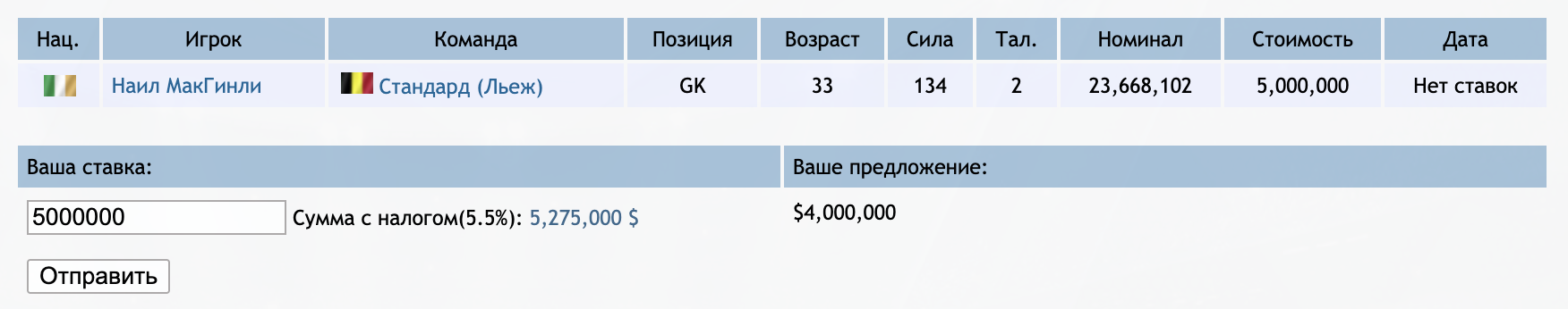 Как видите, немного переделал блок где делается ставка на игрока. Теперь справа есть информация о том, какую цену вы предложили или поставили. Если сума больше или равна желаемой - это ставка, если меньше - это предложение понижения цены.